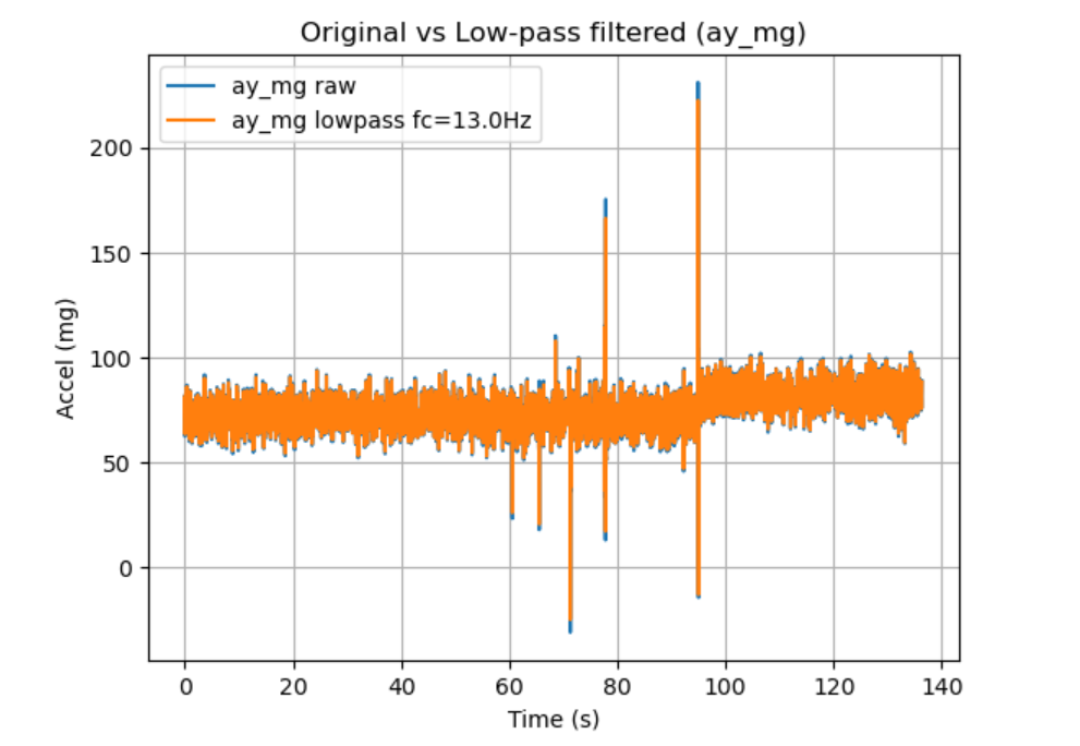 Figure 17 Original vs Low-pass Filtered Accelerometer (ay_mg)